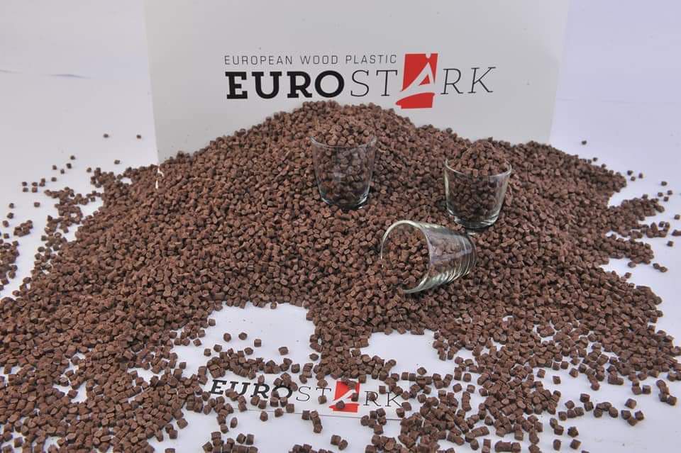 - Secondly, EUROSTARK owns their material with 100% recycled. We have wood powder processing system and a factory to produce plastic pellets and additive. From above advantages, buying wood plastics composite granules from us, it will be much cheaper than producing compound it self