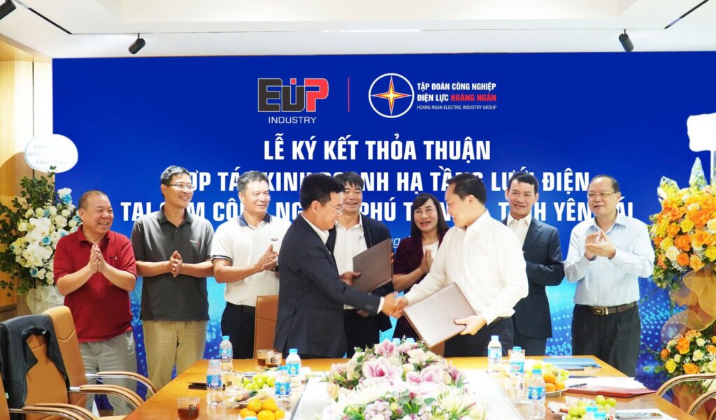 On November 23, 2024, at EuP’s Hanoi office, EuP Industry Joint Stock Company and Hoang Ngan Yen Bai Electricity Joint Stock Company officially signed a cooperation agreement to develop the power grid infrastructure for the Phu Thinh 3 Industrial Cluster in Yen Bai Province. The ceremony was attended by the BOD of EuP Group, representatives from Hoang Ngan Yen Bai Power Company along with the strategic advisors team.