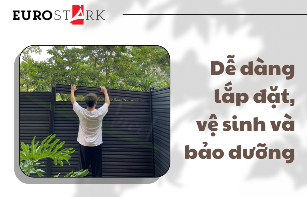 Hàng rào gỗ nhựa thường được thiết kế với những khớp nối để có thể lắp đặt dễ dàng và nhanh chóng. Chính vì kết cấu như vậy mà có thể dễ dàng vệ sinh hoặc tháo ra để thay thế khi hỏng. Ngoài ra, loại hàng rào này không cần phải sơn lại hay thực hiện các biện pháp bảo dưỡng đặc biệt như gỗ tự nhiên hay tường gạch.