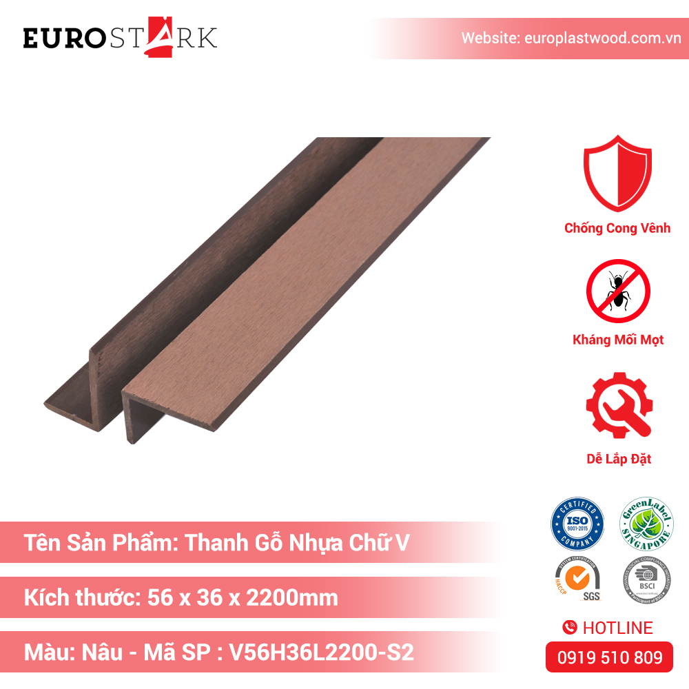 Đặt mua Thanh Gỗ Nhựa Chữ V 56x36x2200mm Màu Đen