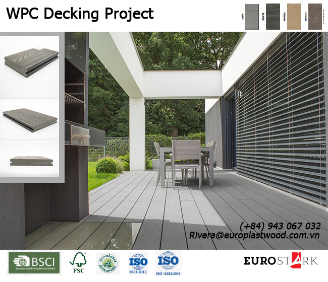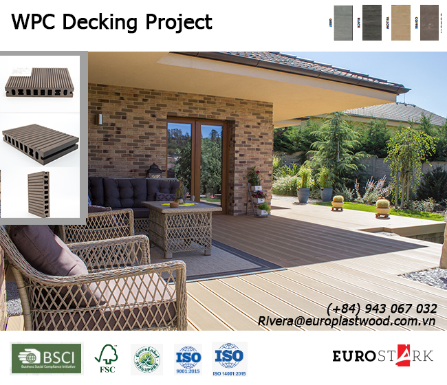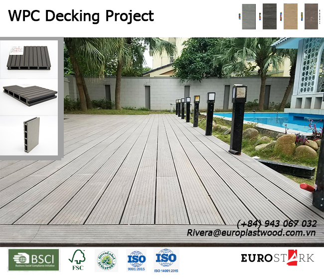 Thank you very much for considering our WPC products and we are willing to support and supply you. Our brand – EUROSTARK is the leading brand of Wood plastic composite not only in Vietnam but also in South East Asia. Your satisfaction is our happiness. We are confident to supply you with the constant quality, on time delivery with an experienced and professional working attitude.